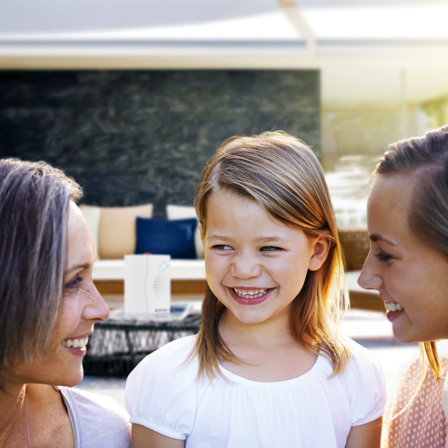 The Visit portable receiver notifies you with a loud sound signal and a bright light when the doorbell or telephone rings, if your baby needs attention or if the smoke alarm goes off. It’s easy to use and wireless, so you can bring it out on the balcony or the porch.